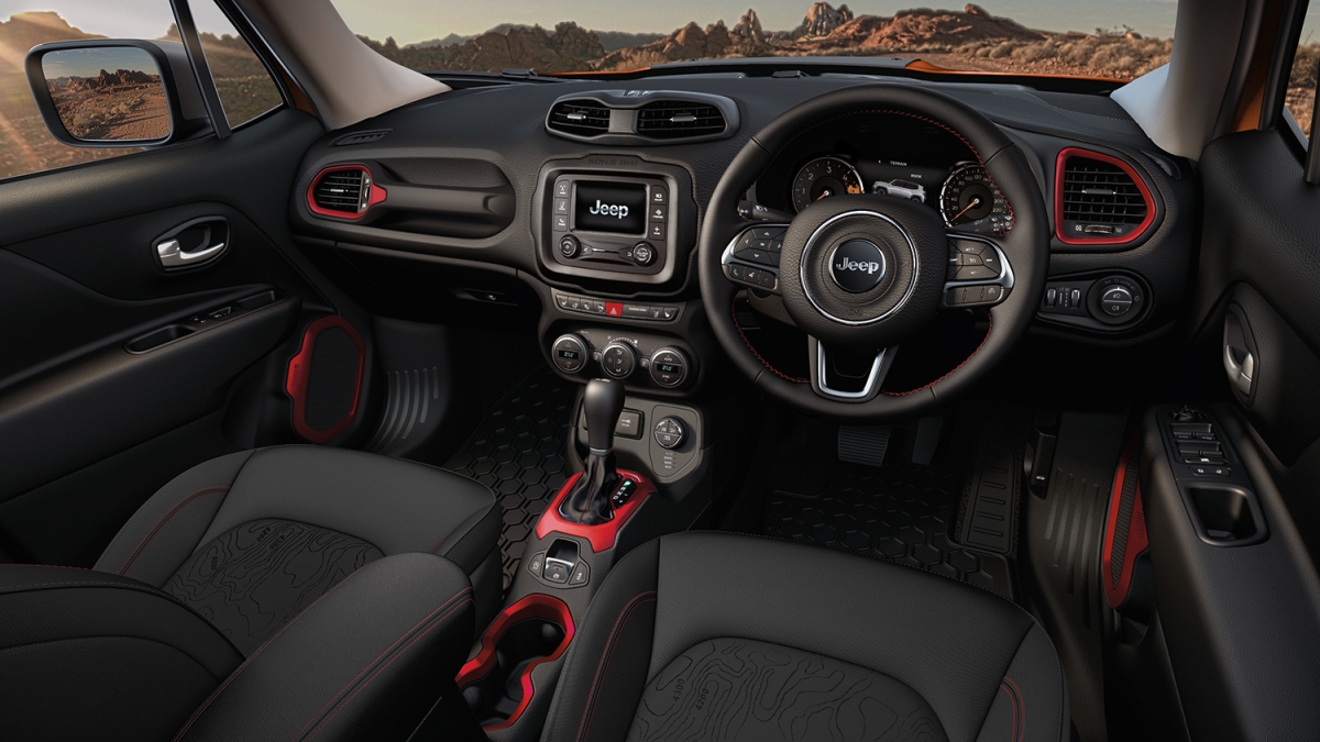 さらに、国内の輸入車4×4 SUVモデルとして最も廉価、4×2モデルは200万円台からという価格設定もお客様にメリットを感じていただけるポイント。388_news_Renegade_Trailhawk_interior_trespass_bk