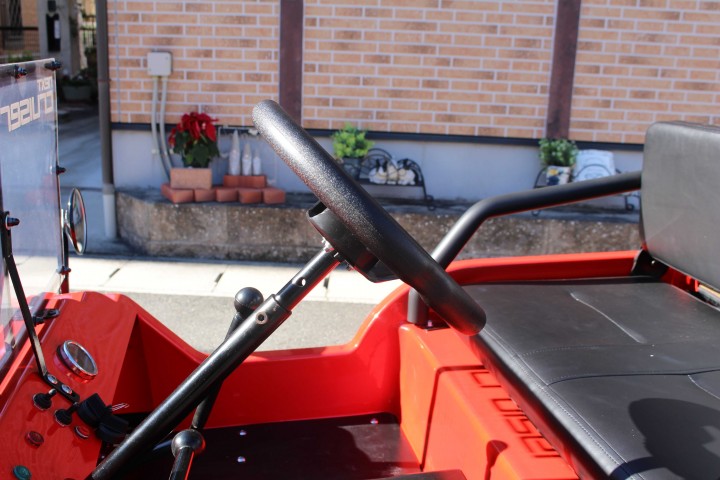 シフトは上から「リバース」「ニュートラル」「1速」「2速」「3速」と本格的な仕様。運転免許は普通自動車運転免許で1人乗り50ccの原動機付自転車(ミニカー登録)。