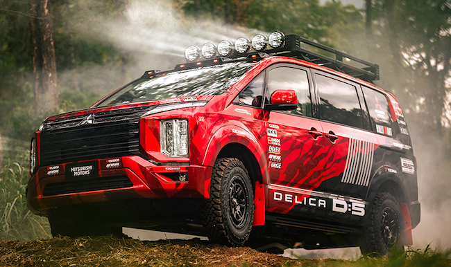 デリカの誕生55周年の話題喚起として「チーム三菱ラリーアート」を支える『デリカD:5』サポートカーを、合計4台投入する。デリカD:5の特長を生かし、WORK製のアルミホイールと、マッド性能に優れるオフロードタイヤ(横浜ゴム)を装着することで、フラットダートからマッドまでラリー全行程を走破できる仕様とした。