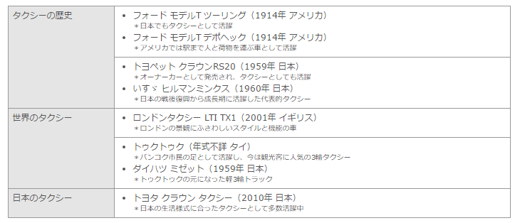 ・タクシーを取り上げ歴史や仕事内容の地理的違いを深掘りして大人の関心にも応える