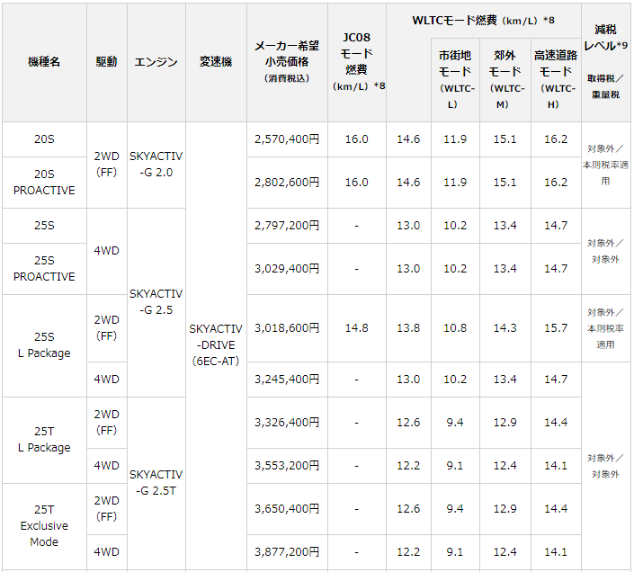 (SKYACTIV-G 2.5T、SKYACTIV-D 2.2)