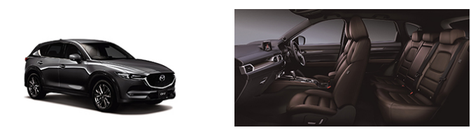 ワンランク上の質感を感じさせる上質な室内空間をつくり上げるため、ナッパレザーのシートや本杢加飾などのこだわり抜いたマテリアルを採用し、最上級のインテリアを新たに設定。そのほか快適性・安全性を向上させる専用の装備・機能を搭載し、CX-5のオーナーに「所有する歓び」を提供。