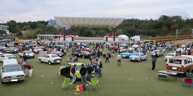 パレードを終えた一般参加車両約100台を一堂展示
