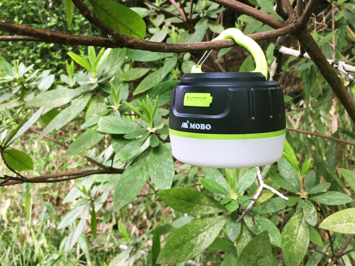 MOBO『マルチLEDランタン』は、リチウムイオン電池を搭載した充電式LEDランタンです。カラビナフックで、テント内などに掛けて簡易照明として使用できるほか、モバイルバッテリーとしての使用も可能です。最小輝度点灯時で最大約100時間の点灯が可能です。