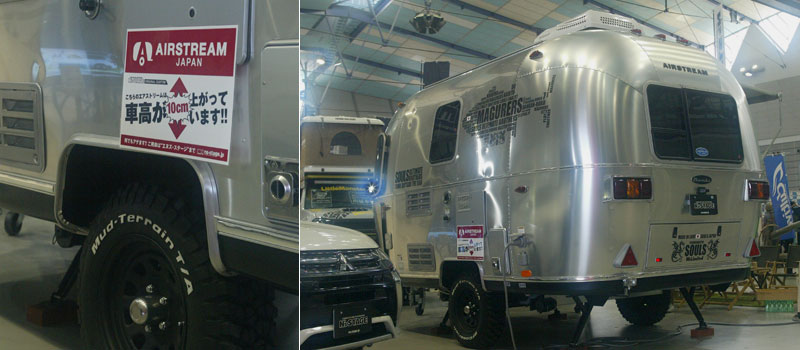 このエアストリームを見て欲しい。なんと車高が10cmリフトアップされている。いつもながら、突飛な発想に驚かされる。ちなみに、エヌズ・ステージはエアストリームジャパン正規代理店でもある。