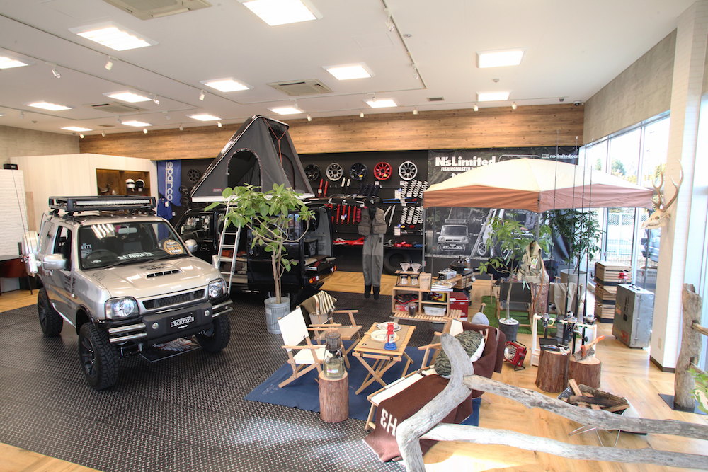 ちなみに、ジムニーやハスラーといったスズキの新車コンプリートカー販売のみならず、デリカやランクルといった大型四駆、さらにはキャンピングカーそしてフィッシングギアまで、取り扱うフィールドはとにかく幅広い。