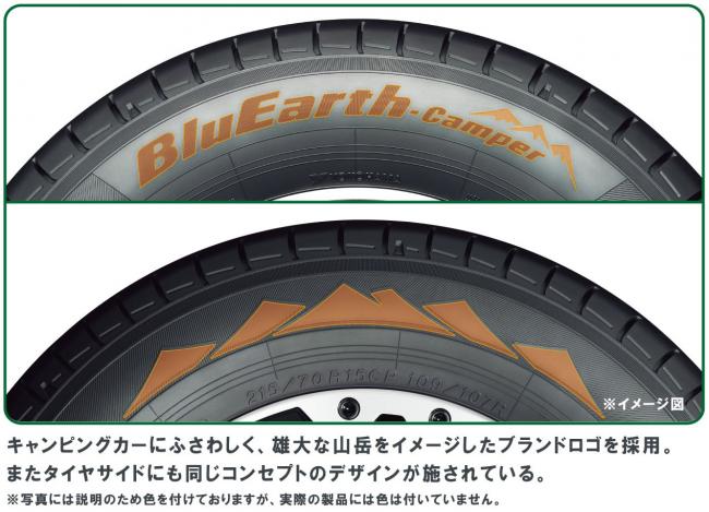 さらに、トレッドパターンには実績のある、雨に強い「BluEarth-Van RY55」の技術・デザインを採用。高硬度のキャップコンパウンドを組み合わせることで、運転時のふらつきの抑制と優れた操縦安定性を実現した。また、タイヤサイドには、キャンピングカーに相応しい雄大な山岳をモチーフにしたデザインも施されている。
