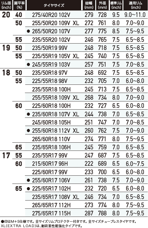 【サイズラインアップ】