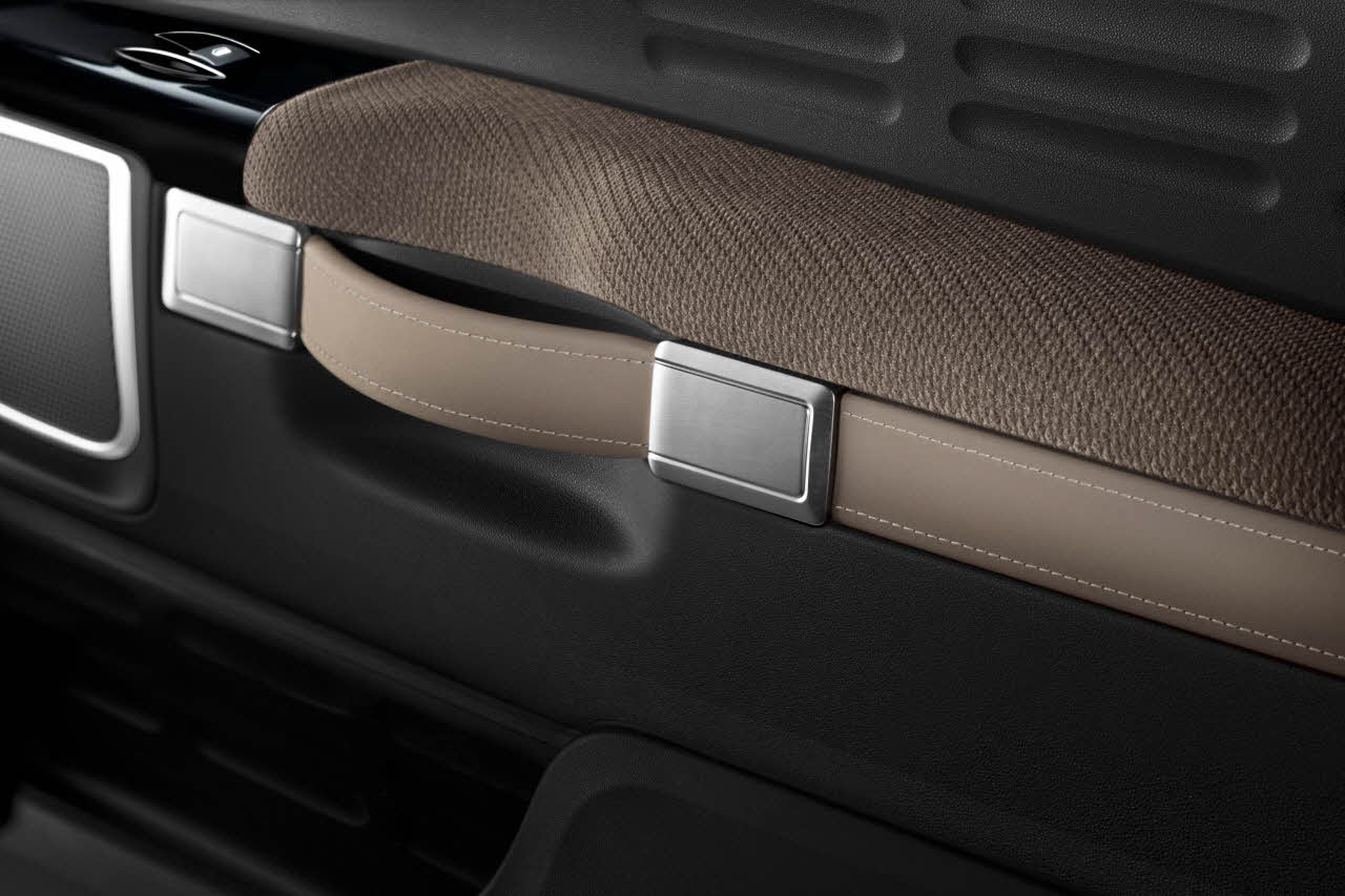 助手席側ダッシュボードに配されたトップボックスは、ルーフから展開するエアバック初の実用化によって可能となった。このトップボックスのデザインやドアのグリップは、スーツケースをモチーフとしたこだわりのデザイン。このクルマで出かける時間を特別なものにする。