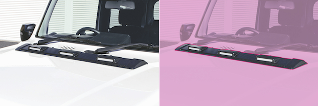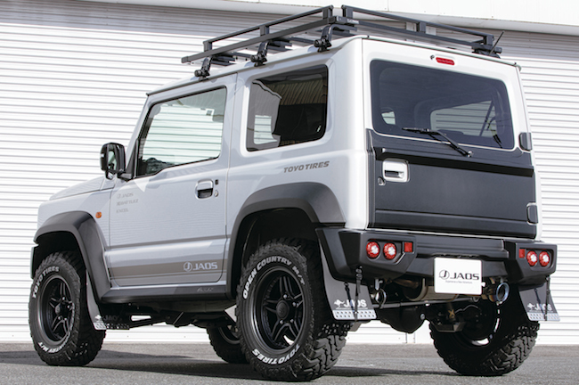 JAOSがラインナッップするジムニーJB64 & JB74系用エクステリアパーツに、ABS樹脂製カーボン調「フロントグリル」「ボンネットディフレクター」そして「リヤハッチパネル」が加わった。