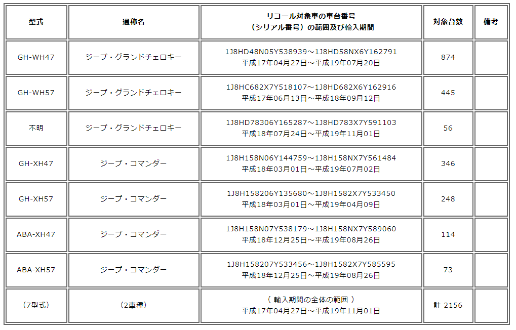 ジープ・グランド チェロキー/ジープ・コマンダー イグニッションキーモジュール、リコール