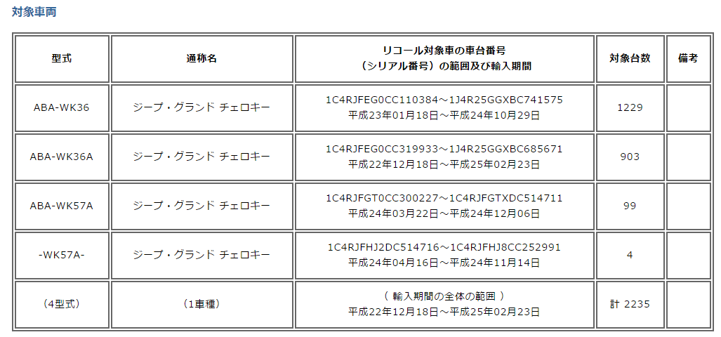 チェロキーリコールリコール