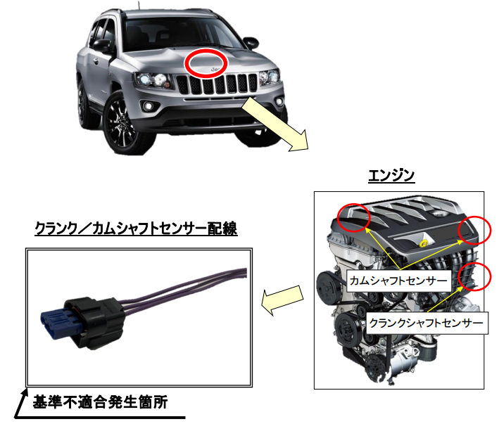 ジープ・コンパス クランク/カムシャフトセンサー配線 リコール