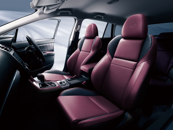 インテリアは「STI Sport」専用のテーマカラーの「ボルドー」でコーディネート。レッドステッチやピアノブラックのパネルと組み合わせることで、スポーティでありながら落ち着きのある上質なインテリアに仕上げた。 また、「STI Sport」専用アイテムとして、STIロゴを配置した専用ルミネセントメーター、ステアリングホイール、サイドシルプレート、運転席・助手席ヘッドレストを採用することで特別感を演出し、レヴォーグ最上級グレードに相応しい仕様とした。
