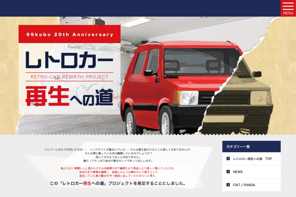 今回のプロジェクトで再生される名車第一弾は、「99工房」が誕生した年と同じ1995年製の名車、赤の「FIAT-PANDA」。現在も多くのカーオーナーに愛される「FIAT-PANDA」をどこまで蘇らせることができるか!