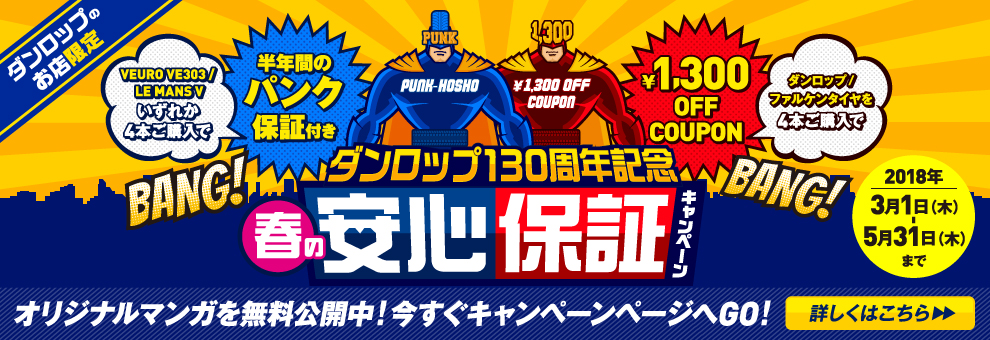 「ダンロップ130周年記念 春の安心保証キャンペーン」