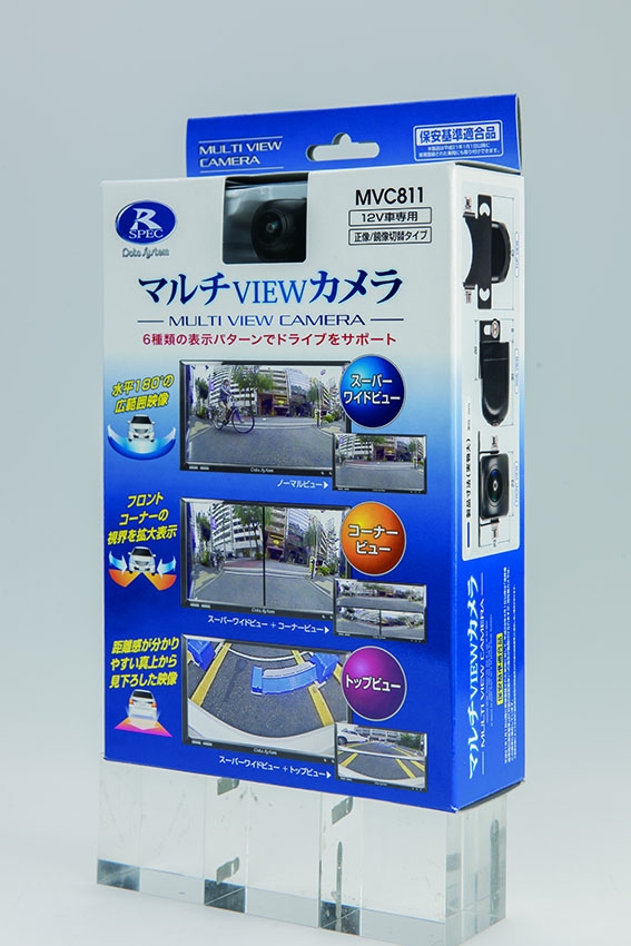 MVC811はフロントやリアに取り付けることにより、見通しの悪い交差点への侵入や狭いスペースの車庫入れなど、運転状況に合わせて画面表示を選ぶことができ、見にくい所も確認できる画期的な車載カメラ。