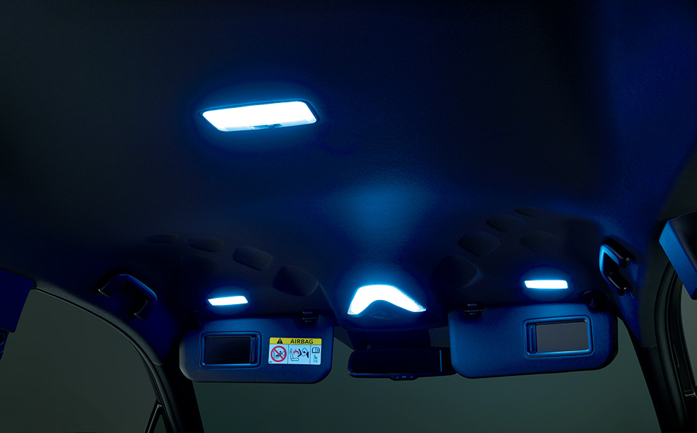 レンズ全面がムラなく光るタイプのLE Dルームランプ。より広範囲を明るく照らし室内の視認性が向上する。 G・G-T 用:フロントパーソナルランプ (2 個)、バニティランプ(2個)、ルー ムランプ(1 個)、ラゲージルームランプ (1 個)のセット。 S・S-T 用:フロントパーソナルランプ (2 個)、ルームランプ(1 個)、ラゲー ジルームランプ(1 個)のセット。 【設定】全車