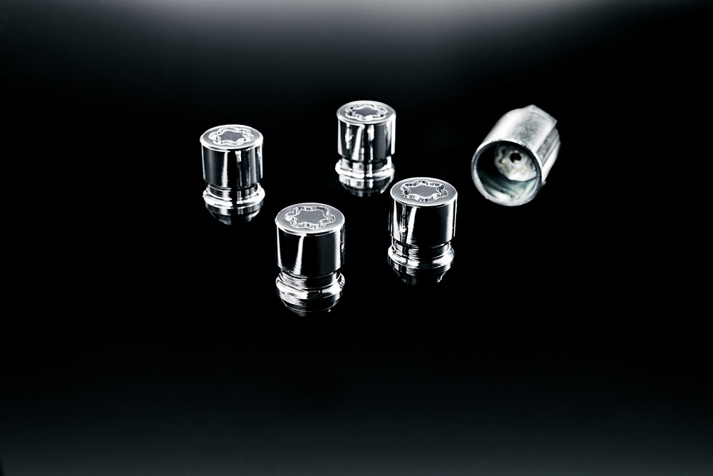 セキュリティの高い専用のキーパターン を採用したテーパー形状のホイールロックナット。 セット内容:ロックナット 4 個 専用キー パターンロック 1 個 【設定】全車