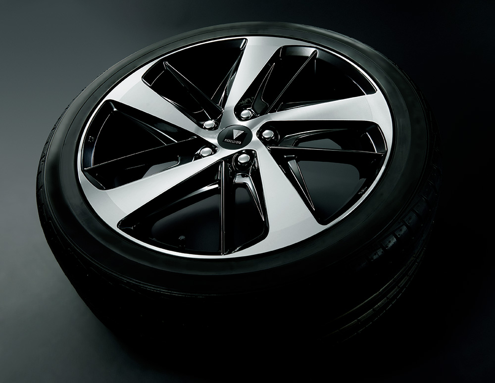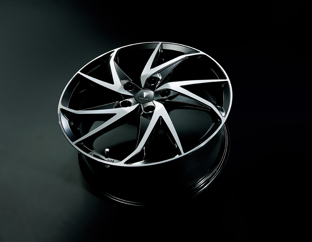 キレのあるスピン形状のスポークと、 ブラックアウトされたフィン状の 立体がバランスよく連なり、先進的で ダイナミックなスタイルを演出する。