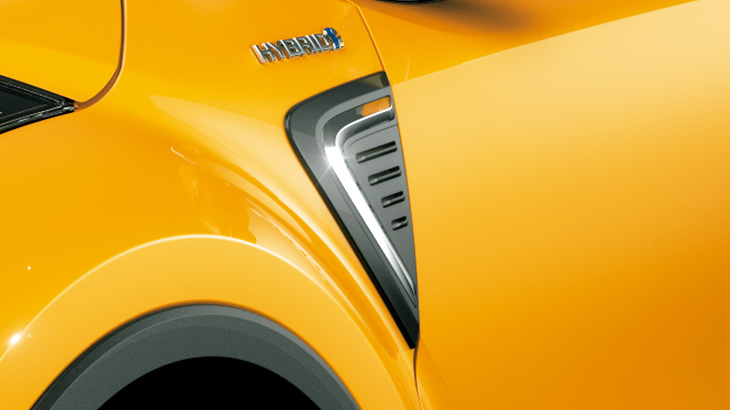 プレスラインに沿ったブラックアウトベ ースにシャープな造形のL字メッキ加飾 を施すことで、サイドビューにメカニカル でスポーティなアクセントを加えます。 【設定】全車