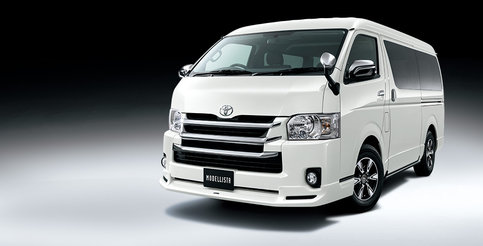 出展車両は、広い荷室で多彩な使い方を実現する「ハイエース/レジアスエース」をベースとし、荷室の使 い勝手をさらに向上させる「MRT“MULTI ROLL TRANSPORTER”TypeⅠ・TypeⅡ」の2台と、 2016年11月に登場したばかりの新型車両「TANK」にモデリスタならではのスタイリッシュなデザインの 「ロッドホルダー」と「エアロキット」等を装着した「TANK MODELLISTA バージョン」の3台を予定し ている。  MRTは2007年の発売以降、釣りやバイク、自転車などの趣味を楽しむ方や、車中泊・キャンプを楽しむ ファミリー層やシニア層に好評を頂いている車両である。今回は、2台のMRTを「テッペンDASH!」のロ ケで実際に使われた仕様で出展し、「MRT TypeⅠ」は広いラゲージルームとラゲージユーティリティフ レームを最大限活用してフィッシングギアを機能的に収納した仕様、「MRT TypeⅡ」はベッドキットや補 助バッテリーなど多彩なオプションを生かし、快適に車中泊しながら荷物も十分積むことができる仕様で展 示する。