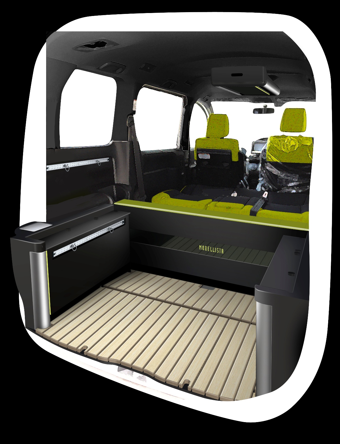 『FUN × FASHIONABLE MOBILE BASE(ファン×ファッショナブルモバイルベース)』をコンセプトに、スタイリッシュなスペースで家族や仲間と過ごせる極上な移動空間を提供。普段使いに便利な 5 人乗のノアが、車中泊も可能なモバイルベースに早変わり。カーライフをもっと楽しくするカスタマイズを手掛けるモデリスタならではのコンセプトカー。