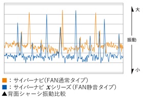 製品の背面に、静音タイプのクーリングファンを採用し、固定用のビスを追加することで、騒音や振動がもたらす音への影響を徹底的に排除するとともに、振動そのものも抑制している。