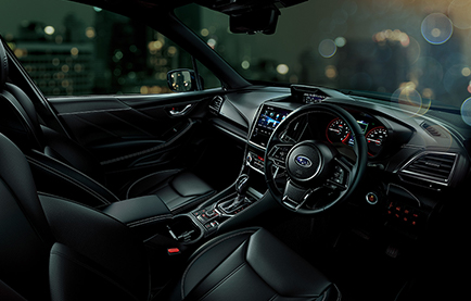 今回発表された特別仕様車「STI Sport Black Interior Selection」は、「STI Sport」にナッパレザー本革シートの他、インテリア全体を質感高く精悍な黒一色でコーディネート。上質にしてスポーティーなSTI Sportの魅力が際立つ、特別な内装に仕立てられている。