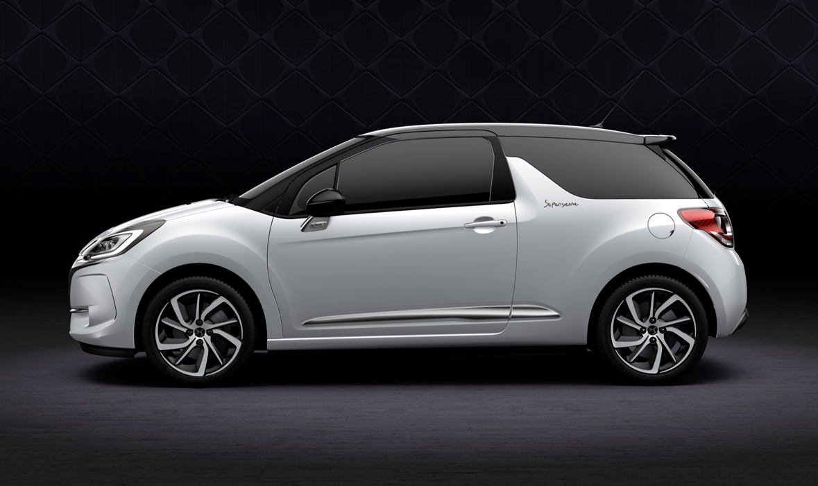 限定デザインとしてパリ生まれのブランドを主張するSo ParisiennneのステッカーがシャークフィンデザインのBピラーとリアに配されている。また、ヘッドランプ周辺にはジュエリーのような煌めきを放つ3つのLEDを縁取るようにナイトライトLEDとDSモノグラムをデザインし、大胆に個性を主張している。”So Parisienne”は電動ソフトトップ搭載のオープンモデルDS 3 CABRIOも同仕様で発売される。