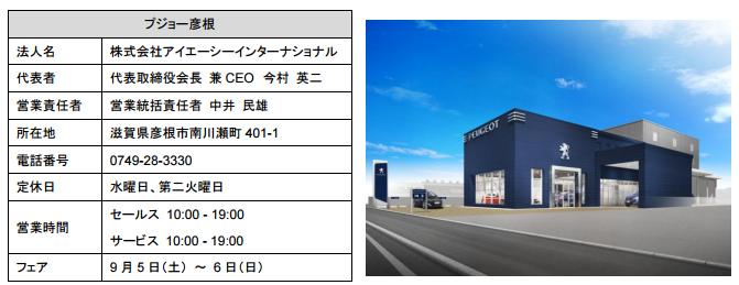 プジョー・シトロエン・ジャポン株式会社は、株式会社アイエーシーインターナショナルの運営による「プジョー彦根」が、店舗 CI であるブルーボックスコンセプトに基づき、9 月 5 日(土)にリニューアルオープンすることを発表した。