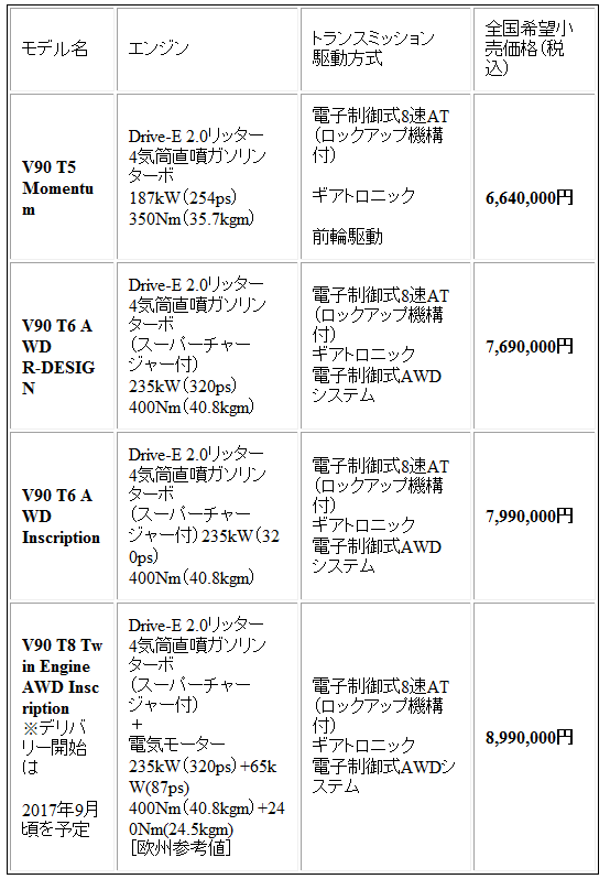 ボルボ・カー・ジャパン株式会社(代表取締役社長:木村隆之、本社:東京都港区)は、ラインナップの最上級モデルとなるフラッグシップ・セダンS90、プレミアム・エステートV90、プレミアム・クロスオーバーV90 Cross Countyを本日より発売する。