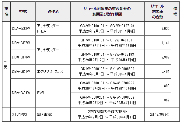 三菱自動車、エクリプス クロス、アウトランダーPHEV等4車種におけるり横滑防止システムリコール