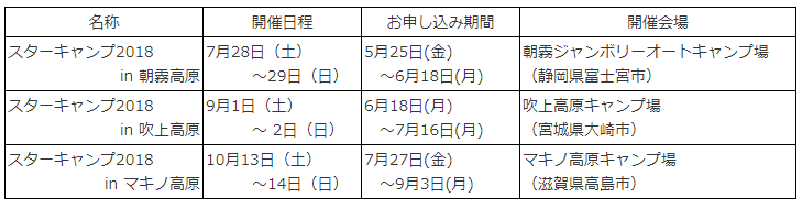 また「スターキャンプ2018」専用WEBサイトにて、「スターキャンプ2018 in 朝霧高原」の参加者募集をしている