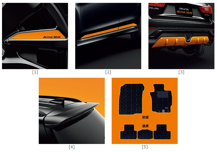 左の写真:RVR「ACTIVE GEAR」(SDA装着車)4WDのACTIVE GEARコンプリートパッケージ(ディーラーオプション)装着車。車両とのセット価格は2,873,081円(消費税込)