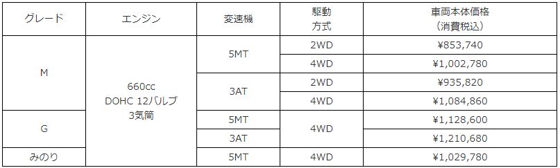 助手席エアバッグ、助手席シートベルトプリテンショナーを「M」と「みのり」に採用することで全グレード標準装備化し、助手席の安全性を向上させた。