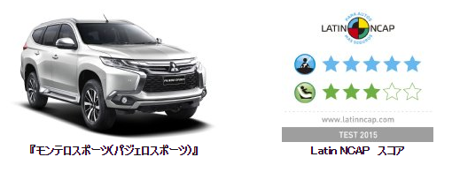 三菱自動車は、タイにおける生産・販売会社ミツビシ・モーターズ・タイランド(MMTh)で生産している新型ミッドサイズSUV『モンテロスポーツ』*1が、2015年「Latin NCAP」*2成人乗員保護評価において、最高評価である5★を獲得したと発表しました。