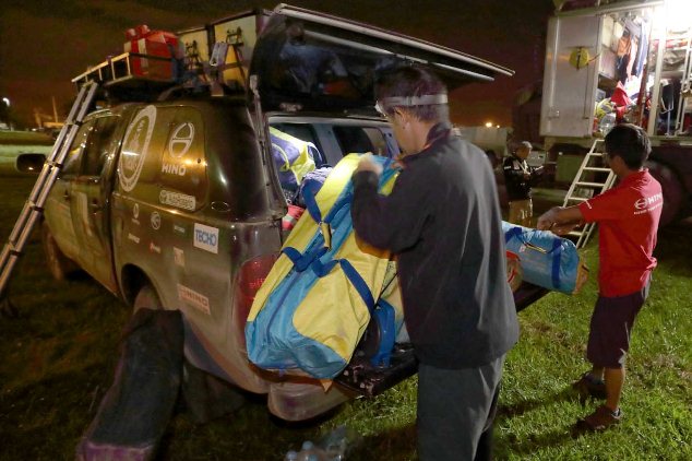 サルタのビバークで整備の準備を進める日野チームスガワラ