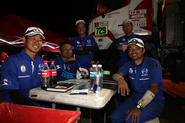 その後も安定した走行を続けた2号車は無事9位でSSをゴール。リエゾンを辿ってラ・リオハ州北部にあるチレシトのビバークに2号車が到着したのは午後10時過ぎとなった。車両はパンク以外はノートラブル。明日はサン・ファンとの間で2区間合計522㎞のSSが予定されている。難易度の高い区間としては最後の締め括りとなりそうで、メカニックたちはとりわけ入念な点検整備を行った。