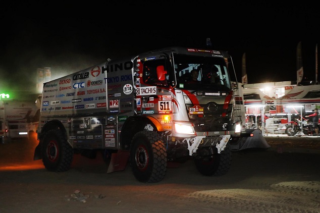 ペルーでの5連戦もこの日が最後ステージ。サン・ファン・デ・マルコナ~アレキパ間で267㎞の競技が行われた。日野レンジャーでトラック部門に参戦している日野チームスガワラの菅原照仁/高橋貢組2号車は途中立ち往生した車両によって25分間ほど足止めされたながらも総合12位/排気量10リットル未満クラス1位でこの競技区間(SS)を走破し、この日までの累積順位を総合5位(暫定)とした。