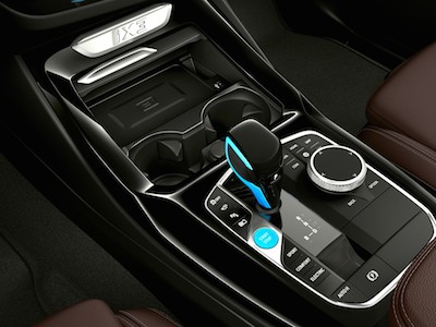 『BMW iX3』はBMW X3をベースに、随所に電気自動車であることを主張するデザイン・エレメントを採用する。BMWロゴやキドニー・グリル周りをはじめ、リアスポイラーの一部、スアート/ストップボタン、シフトノブのまわり等を青色とし、BMW X3とは異なる存在であることを主張している。