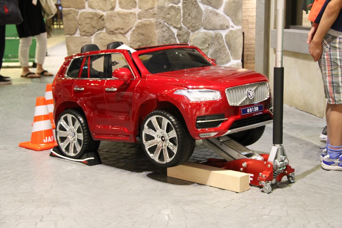 JAFロードサービスカンドゥー基地では、隊員の証であるオリジナルカード(隊員証)を発行、車のタイヤ交換体験できるなど、 “ロードサービス隊員”になれるアクティビティ。