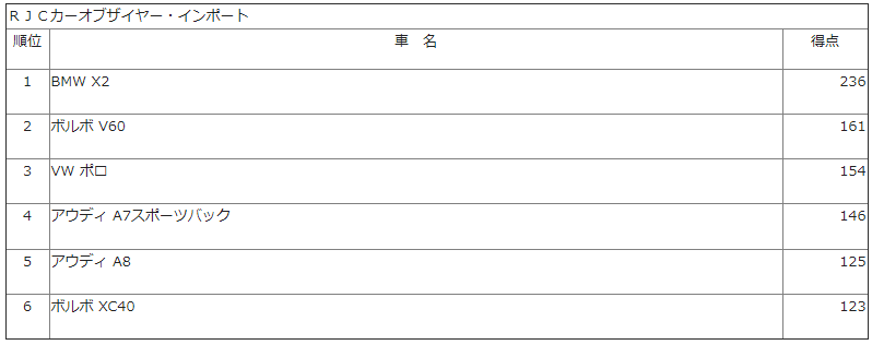 RJCカーオブザイヤー・インポート