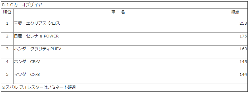 2019 年次RJC カーオブザイヤー決定!