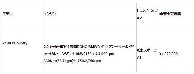 BMW 218d xCountry特別装備内容*1