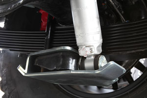 しかし、以前からナナマルパーツを徹底的に追求しているモトレージでは、ピックアップ専用リーフを開発。76と合わせると、4種類のリーフをリリースし た。この他、岩場などでのバック時に、ダンパーの付け根部分を守る「ショックガード付きリアUボルトスキッドプレート」の製品化をはじめ、本格四駆ならで はの頑強なガード類を続々とリリースしている。