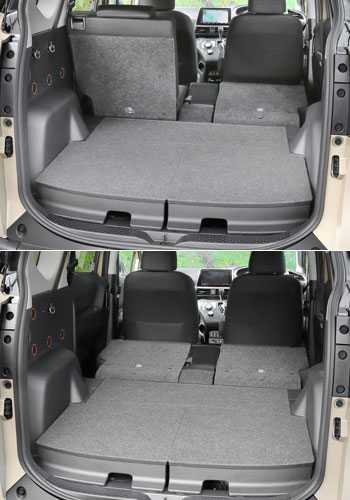 セカンドシートのチルトダウン機能によって、シートがラゲッジに張り出すことがなくなり、ラゲッジルーム(奥行き)を有効に活用できるようになった。ちなみにサードシート付きモデルのセカンドシートはタンブル機能ゆえにシートが残ってしまっていた。