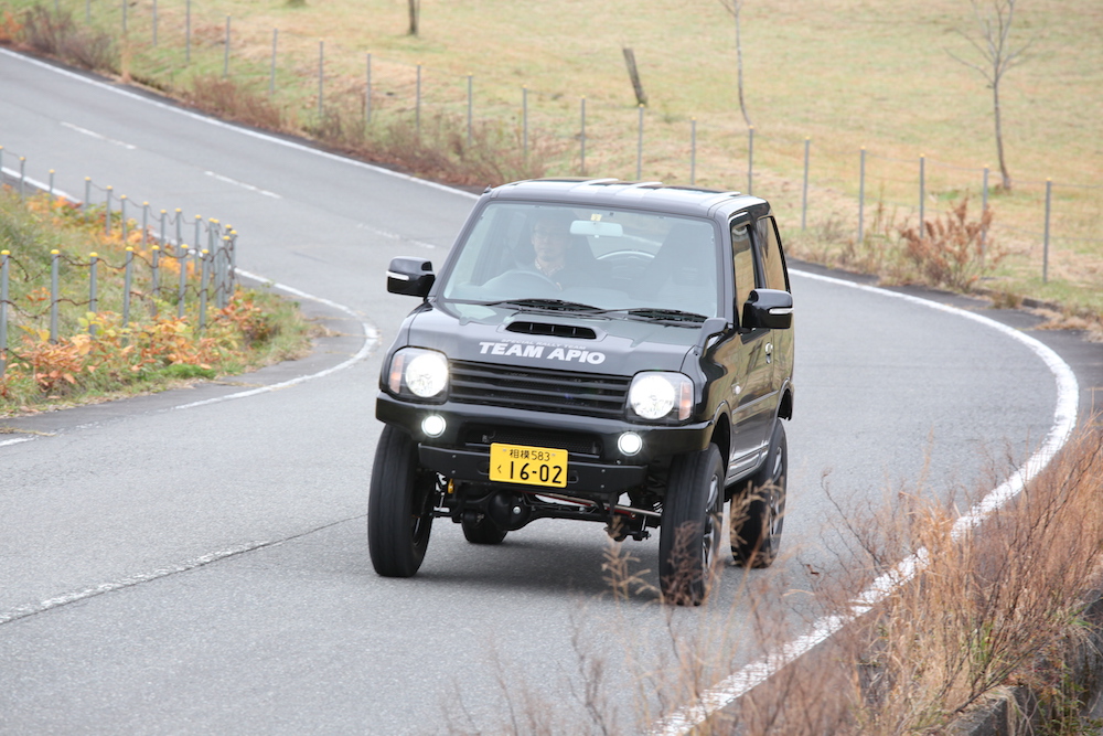 「乗り心地に関しては、良い意味で予想を裏切ってくれましたね。コーナーではハンドリングが素直で扱いやすいから、このジムニーのサスペンションの良さが引き出されている感じです」と、河野社長はAPIOジムニーとの相性の良さに惚れ込んだ様子。