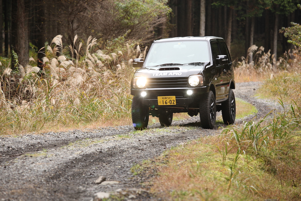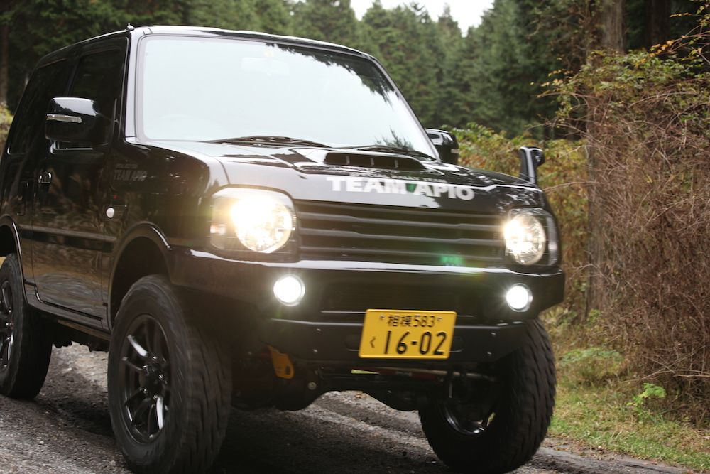 img_6184_1今回のテスト車両は、APIOジムニー。目的や予算によりタイプが選べるオリジナルカスタムジムニーで、いずれも高品質パーツで構成された完成度の高いコンプリート車だ。