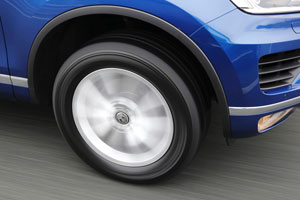 今回テストしたのは、シリーズ中最も低い扁平率を持つサイズの中で最大となる255/55R18。このサイズを標準とするVWトゥアレグV6にこれを装着し、舗装路面での試乗テストを行った。
